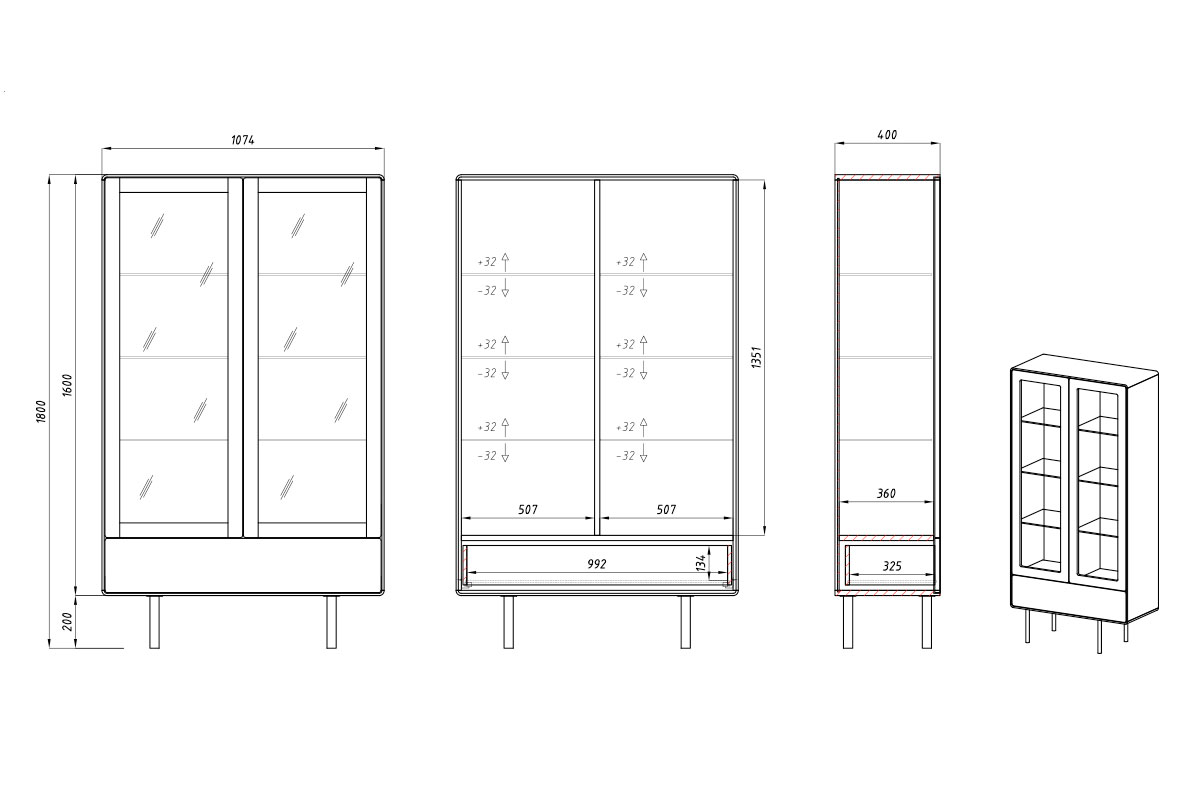 Витрина 2-х дверная "Norman", дуб натуральный, чёрный, 1 ящик, (.Г000073646)