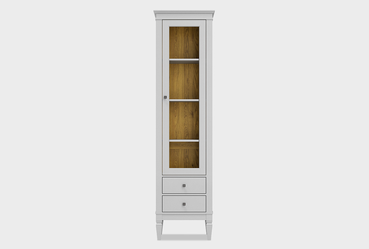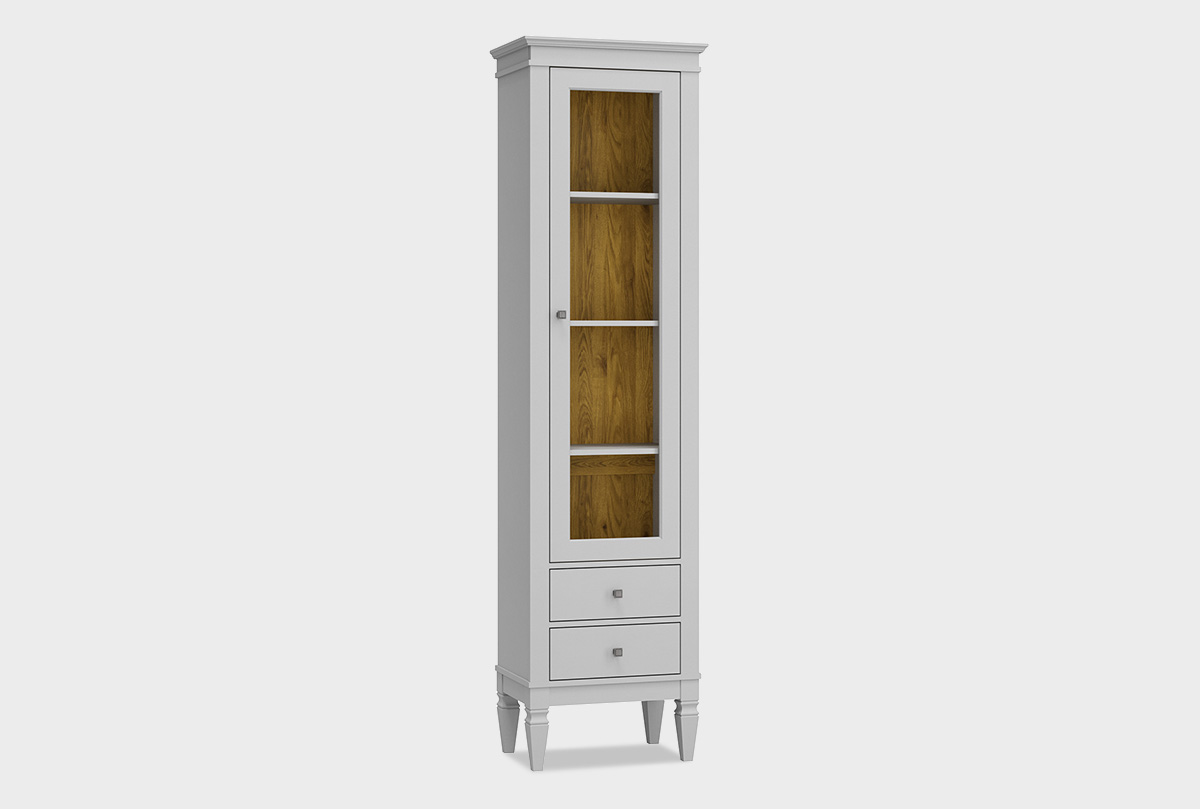 Правая витрина «Ольса-С» 102 — это элегантное и универсальное решение для хранения вашей библиотеки или коллекции. Изготовленная из натурального массива сосны с экологичным покрытием на водной основе, она не только подчеркивает красоту древесины, но и защищает её от внешних воздействий. Три просторные полки за стеклянной дверцей и два удобных ящика с плавными доводчиками HAFELE обеспечивают идеальный порядок, в то время как классические ручки Giusti и надёжная фурнитура Blum добавляют изделию утончённости и долговечности. Благодаря высоким ножкам и лаконичному дизайну, эта витрина легко впишется в интерьер гостиной, кабинета или детской, став в нём как самостоятельным акцентом, так и гармоничной частью коллекции.