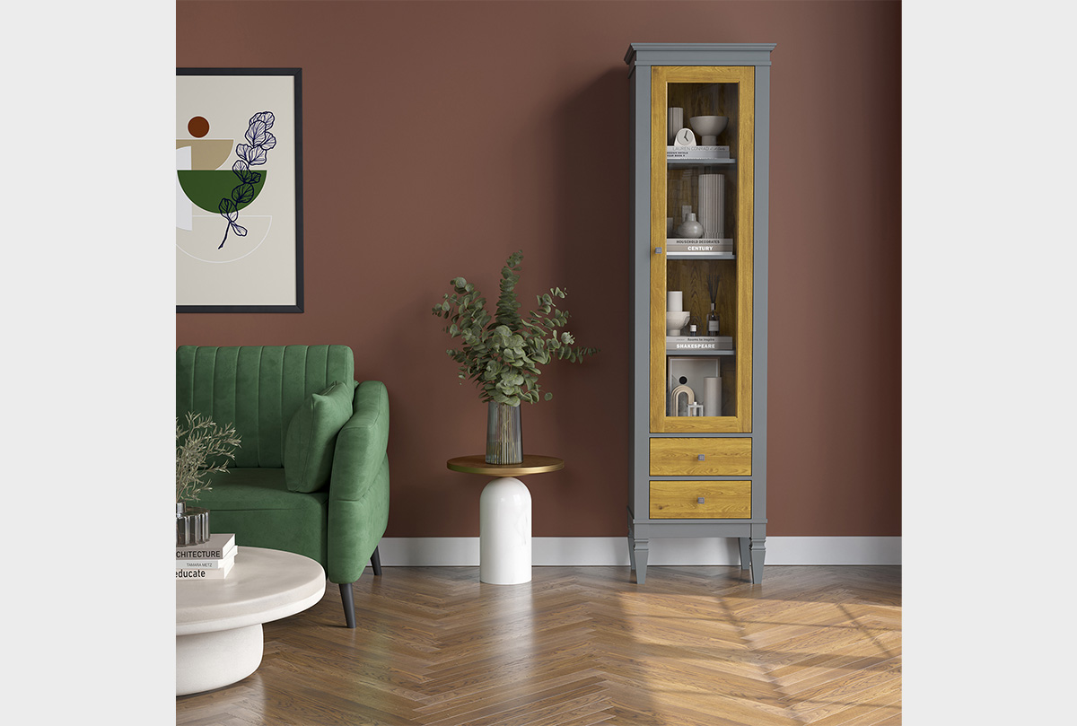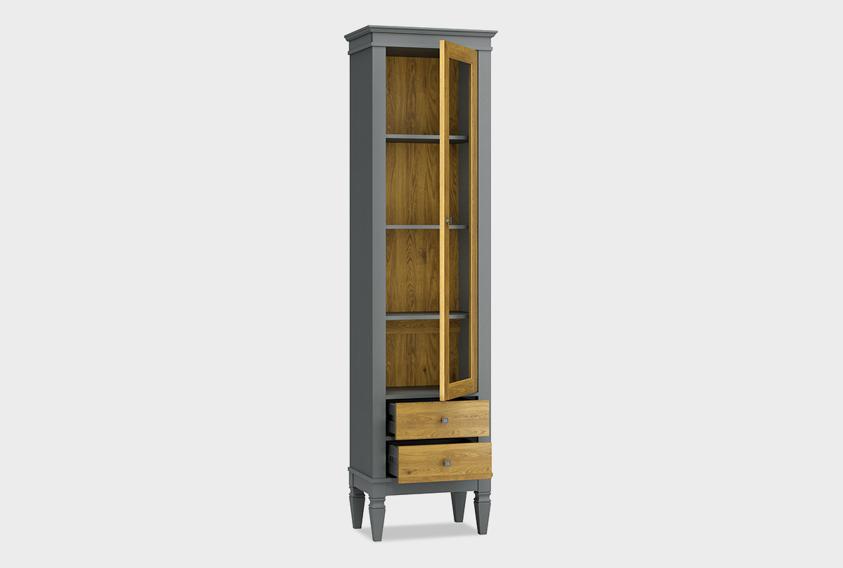 Правая витрина «Ольса-С» 102 — это элегантное и универсальное решение для хранения вашей библиотеки или коллекции. Изготовленная из натурального массива сосны с экологичным покрытием на водной основе, она не только подчеркивает красоту древесины, но и защищает её от внешних воздействий. Три просторные полки за стеклянной дверцей и два удобных ящика с плавными доводчиками обеспечивают идеальный порядок, в то время как классические ручки и надёжная фурнитура добавляют изделию утончённости и долговечности. Благодаря высоким ножкам и лаконичному дизайну, эта витрина легко впишется в интерьер гостиной, кабинета или детской, став в нём как самостоятельным акцентом, так и гармоничной частью коллекции.