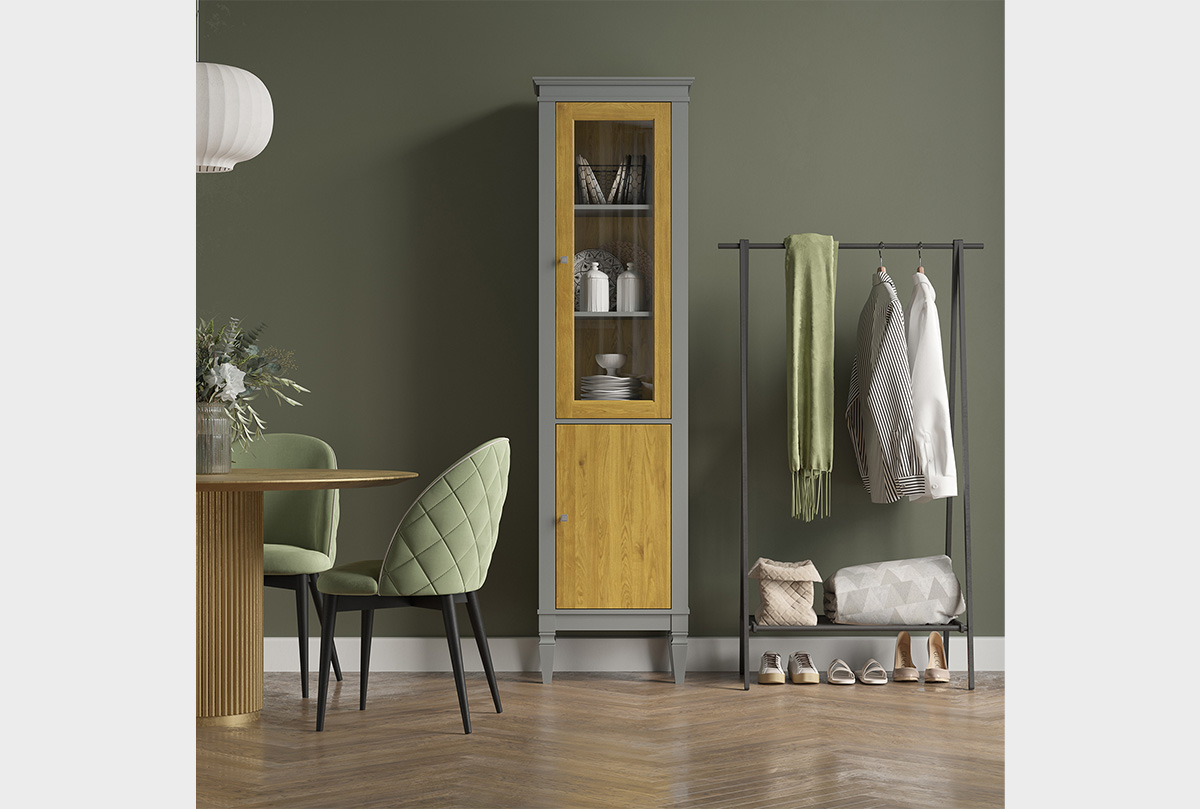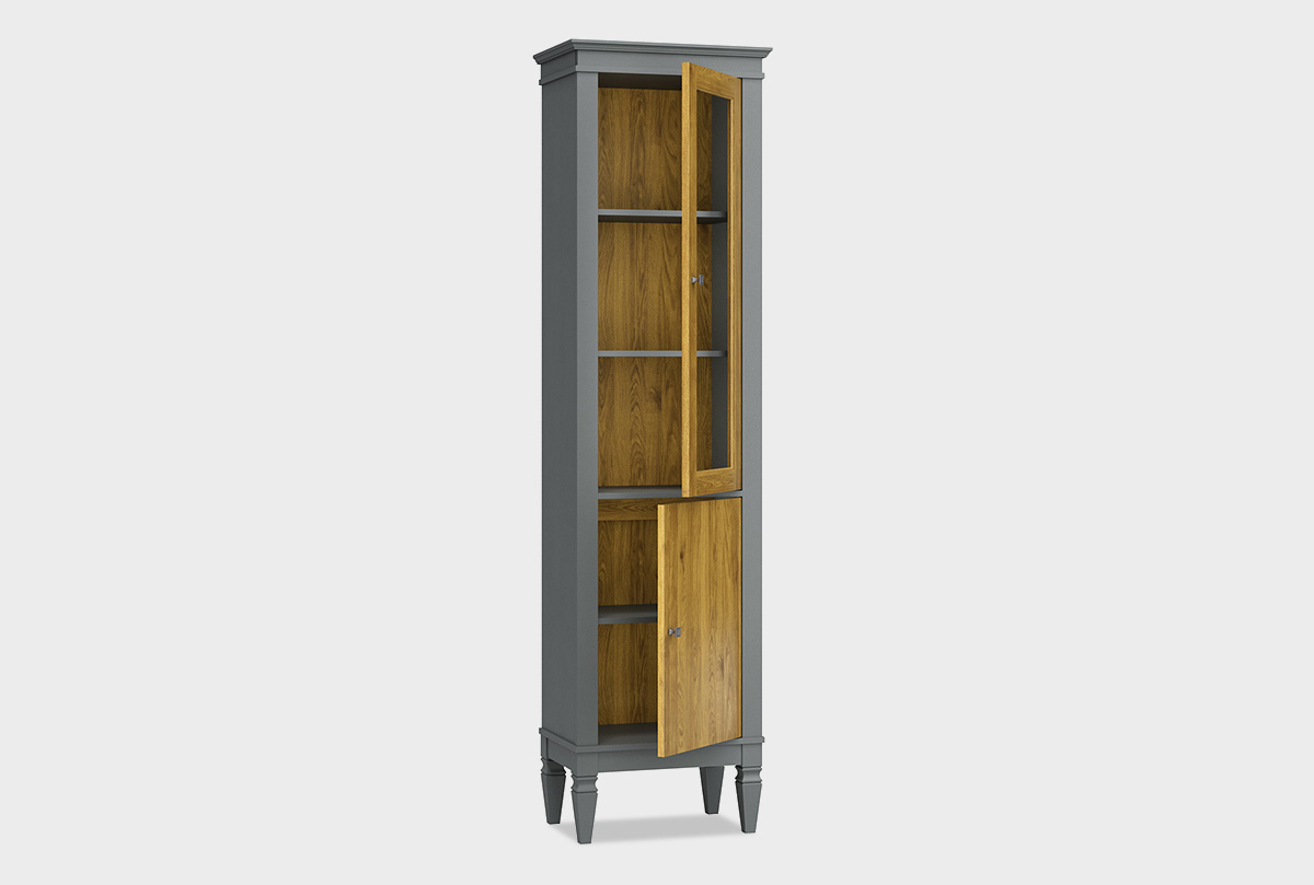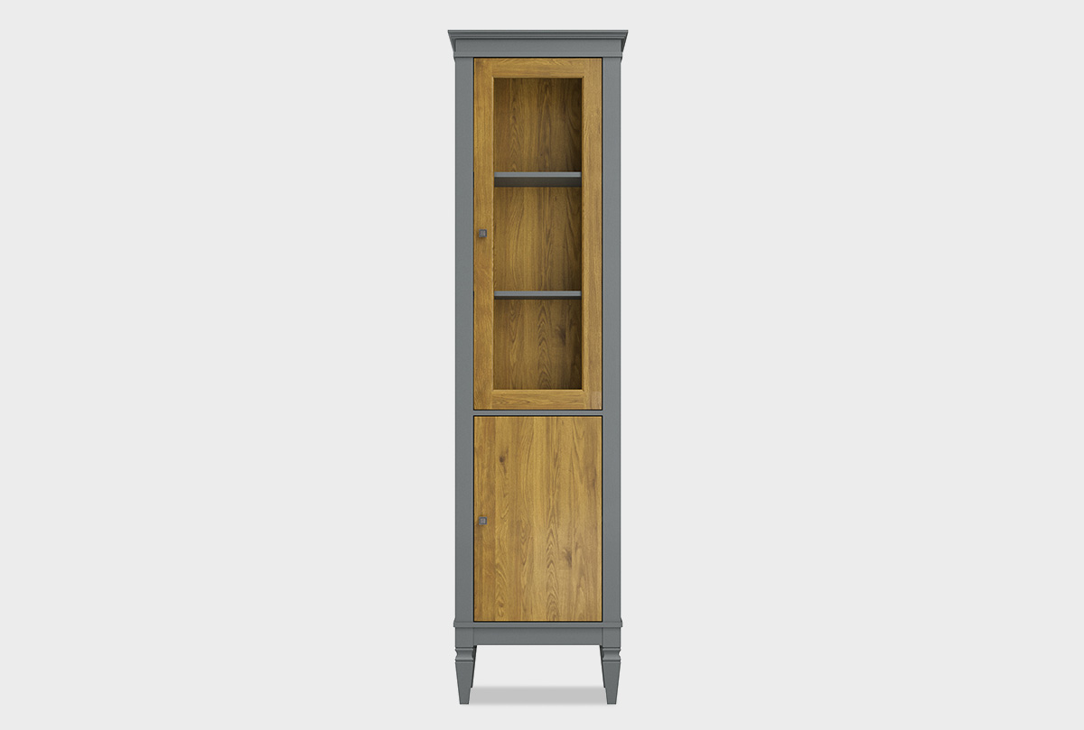 Витрина «Ольса-С» 110 — это воплощение элегантности и функциональности, созданное для истинных ценителей порядка и красоты. Изготовленная из благородного массива сосны с экологичным покрытием, которое бережно раскрывает натуральную текстуру древесины, эта высокая и статная модель станет изысканным акцентом в гостиной, кабинете или библиотеке. Пять вместительных полок за комбинацией стеклянной и глухой дверцы надежно укроют ваши любимые книги или коллекционные предметы, всегда оставляя их на виду и под рукой. Каждая деталь витрины говорит о безупречном качестве: плавный ход обеспечивают доводчики, безотказную работу — качественные петли, а изысканный штрих в классическом стиле вносят ручки из состаренного серебра.
