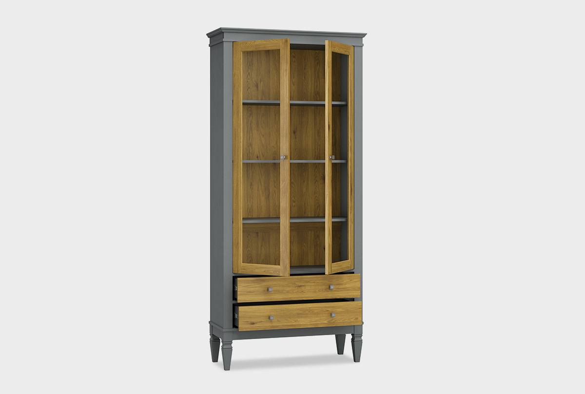 Витрина «Ольса-С» 202, выполненная из натурального массива сосны, станет изысканным и функциональным акцентом в вашем интерьере. Её строгие классические формы, подчёркнутые элегантными ручками из состаренного серебра, сочетаются с практичностью двух просторных ящиков и четырёх полок за лёгкими стеклянными дверцами. Благодаря высоким ножкам и продуманной конструкции витрина выглядит воздушно, а применение премиальной фурнитуры с системами плавного закрывания гарантирует безупречную и тихую работу на долгие годы. Экологичное лаковое покрытие на водной основе не только надёжно защищает древесину, но и выгодно выделяет её живую текстуру, создавая в гостиной, кабинете или библиотеке атмосферу уюта, порядка и естественной красоты.