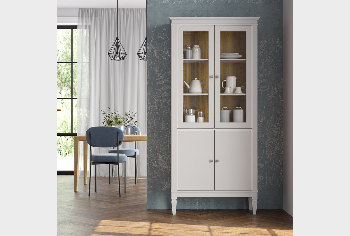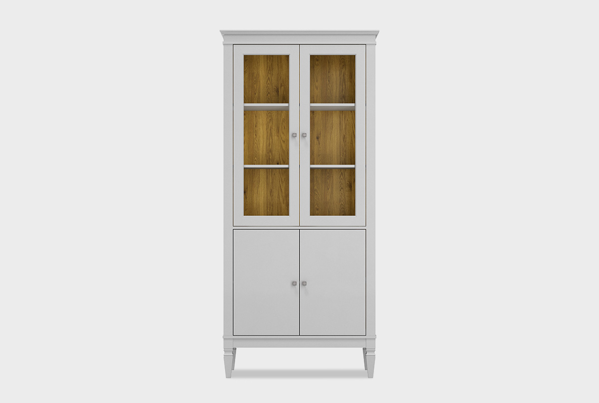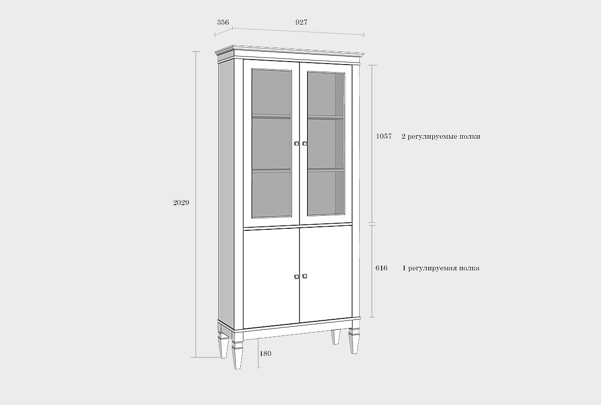 ✅ Оснащена внутри вместительными полками, двумя стеклянными дверями и двумя дверями (филенка).