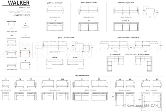 Walker диван 3-х местный M, светлый, (.Г000074284)