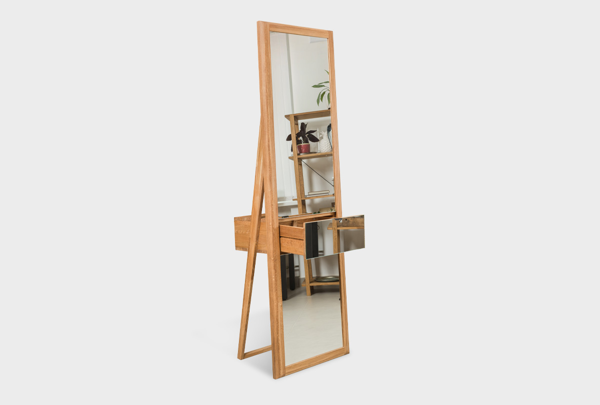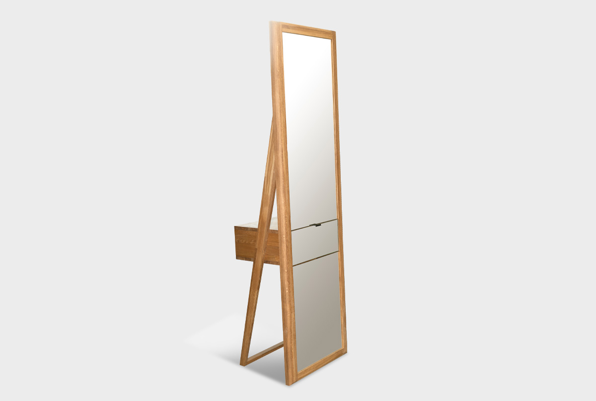 Напольное дизайнерское зеркало Art Collection («Art Collection») в цвете «бейц-масло» из массива дуба. Размеры (ШxВxГ) 560 x 1945 x 471 мм.