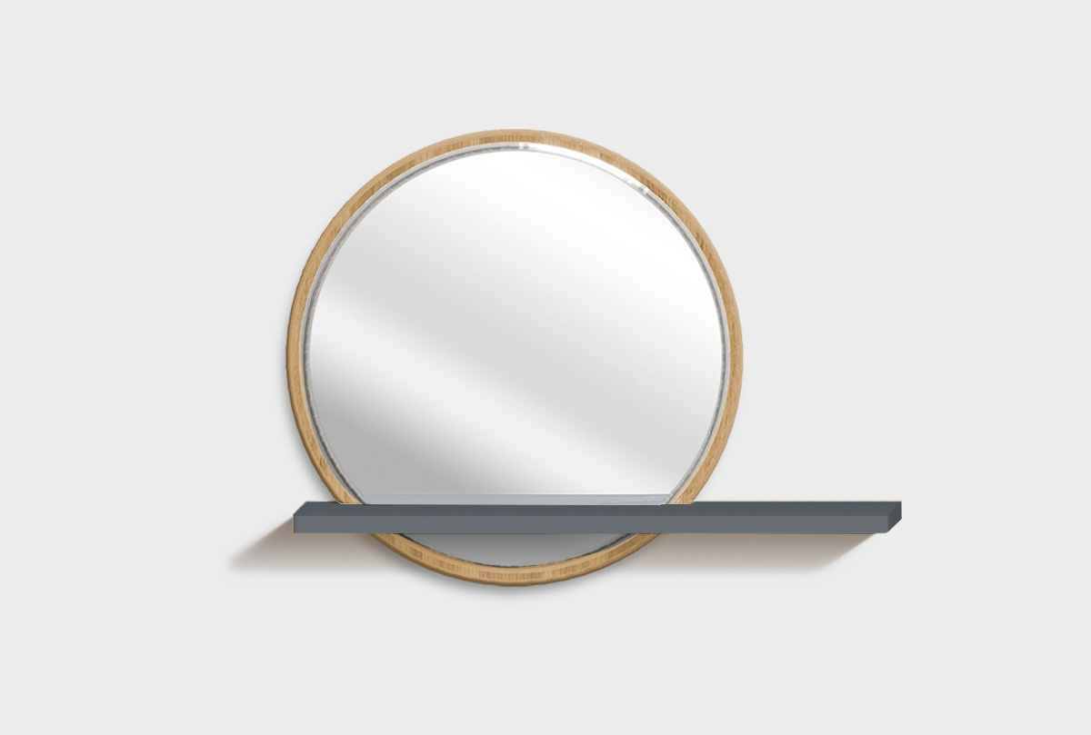 Настенное круглое зеркало с полкой Wallstreet в цвете «к-бейц-масло, п-антрацит» отличный выбор для спальни, ванной или прихожей. Навесное зеркало изготовлено из натурального дерева, это формирует минималистичный современный дизайн. Круглое настенное зеркало может акцентировать внимание на уникальных предметах, наполнить атмосферу легкостью и простором. Благодаря светлым цветам настенное зеркало с полкой будет отлично сочетаться с туалетным столом и другими элементами интерьера.