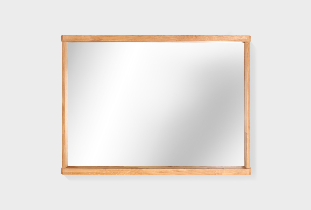 Горизонтальное настенное прямоугольное зеркало Wallstreet в цвете «бейц-масло» отличный выбор для спальни, ванной или прихожей. Навесное зеркало изготовлено из натурального дерева, это формирует минималистичный современный дизайн. Прямоугольное настенное зеркало может акцентировать внимание на уникальных предметах, наполнить атмосферу легкостью и простором. Благодаря светлым цветам настенное зеркало с полкой будет отлично сочетаться с туалетным столом и другими элементами интерьера.