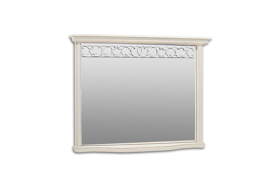 Элегантное горизонтальное зеркало в раме «Оскар» в цвете «белая эмаль с темной патиной». Утонченное творение дизайнеров, созданное в классическом стиле, станет главным акцентом любого интерьера. Рама из массива дуба заострит внимание вошедших на внушительности мебельного шедевра, а кружевные элементы в верхней части зеркального полотна создадут неповторимый узор.