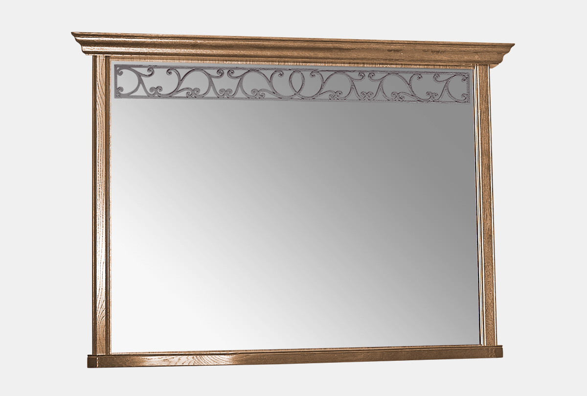 Элегантное зеркало в раме из набора мебели для спальни «Тэфи» (Tefi). Утонченное творение дизайнеров, созданное в классическом стиле, станет главным акцентом любого интерьера. Рама из массива дуба заострит внимание вошедших на внушительности мебельного шедевра, а кружевные элементы в верхней части зеркального полотна создадут неповторимый узор. На ваш вкус представлено три необычных цветовых решения: «амбэр с белой патиной», «классик» и «белая эмаль с темной патиной».