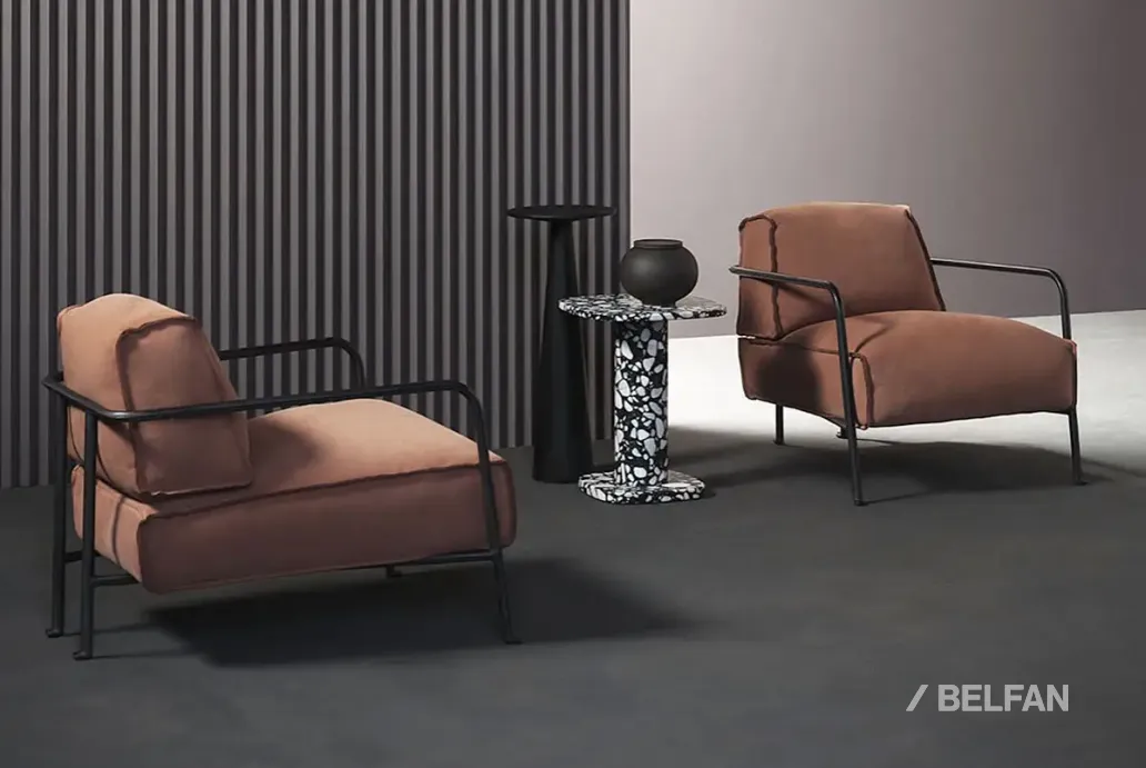 Экстравагантный современный дизайн кресла ДАНТЕ (вариант 1) точно привлечет ваше внимание. Его строгие формы с ярко выраженным наружным швом, выглядят не только современно и необычно, но и придают изделию некую брутальность. Приятные ощущения от посадки создают высокоэластичное наполнение с пружинным блоком, а нестандартная для кресла глубина сиденья позволит с комфортом расположиться на нем для отдыха.