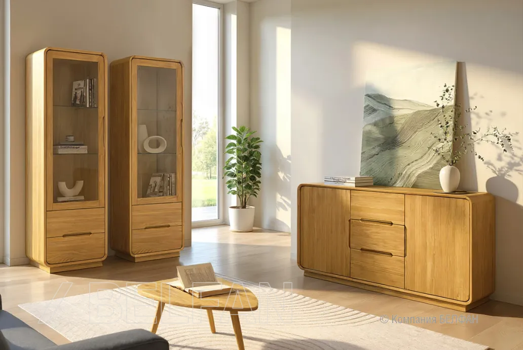 Гостиная «Монблан» #1 .Футуристичные округлые формы и высокие цоколи изделий придают предметам легкость и невесомость, утопленные фасады с графическими профиль-нишами подчеркивают современный лаконичный дизайн коллекции. Коллекция идеально подойдет для тех, кто ценит не только дизайн, но и его практичность.