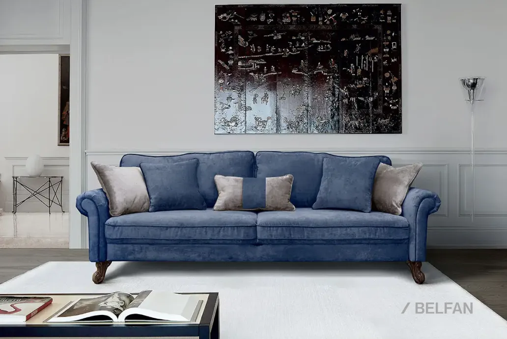 ТРИНИТИ диван 3-х местный #7 с изящными ножками необычной формы, выполненные из массива, и декоративным кантом по контуру. Механизм трансформации "Тик-Так".
